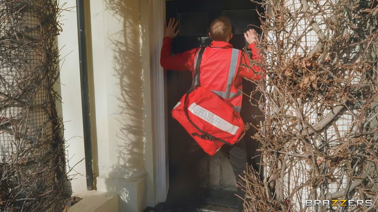 Уютная атмосфера в маленьком городке: девушка чутка за тридцать вышла подышать в легком сарафанчике, встретившись за забором с почтальоном. Пока он искал нужные письма, хозяйка показала ему сиськи, просто так, безвозмездно, для настроения. Не успела рука парня до них дотянуться, явился четырехглазый муженек, который увел даму сердца внутрь дома и отчитал ее. По пути, за спиной супруга, рыженькая вновь показала грудь. Через пару минут почтальон все-таки решил выполнить работу, просунув письма в специальное окошко в двери, туда же он высунул длинный член, дав его отсосать, и трахнул красивую самочку, впустившую его домой, чтобы было удобней заниматься изменой прямо за спиной супруга, который до последнего не понимал ничего, пока не наткнулся на обконченные письма на полу.