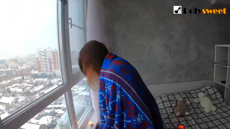 Пухлая девушка заранее постелила на пол какую-то дубленку, расставила зажженные свечи по подоконнику и села рядом, начав читать книжку. Романтическую обстановку под спокойную музыку разбавил ее партнер, очень похожий на пидорка (это не голословные заявления, можете убедиться сами). Долго размусоливать голый чувак не стал и сразу поставил подружку рачком перед пространством между окном и кроватью, приступив ее трахать сзади. Чуть позже он поднял ее на ноги, она все также была загнута и присела лишь для того, чтобы ей надрочили на сиськи пару капель.