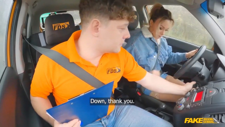 Увидев, что к машине подходит девушка, инструктор сразу опечалился, так как он прекрасно понимает насколько сложным будет провести урок вождения. Он должен был стать последним перед получением водительского удостоверения, но украинка, неплохо говорящая по-английски, даже тронуться не смогла, а потом вытворила такое, что мужчина захотел перенести экзамен на следующий год. Но шлюшка стала уговаривать его, ведь ей пообещал муж классную тачку, а она хочет ей попонтоваться перед подружками. Денег у нее лишних нет для решения вопроса, но отдаться в тачке школы вождения Fake Driving она всегда готова.