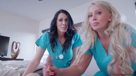 Сразу две зрелых медсестры пришли проведать одного школьника, который уже долгое время сидит дома на карантине и сегодня с утра все еще нежится в кровати. Дамы его разбудили, а когда тот не захотел подниматься, жалуясь на болезнь, стянули с него одеяло и увидели утренний стояк. Переглянувшись, женщины принялись вместе дрочить его хуй и сосать, чуть не забыв вытащить термометр из его задницы, после чего он трахнул обеих большегрудых докторов и оказался полностью вылечен. Так они выяснили, что парнишка обычный симулянт, но не стали делать особых заметок для жалобы в учебное заведение.