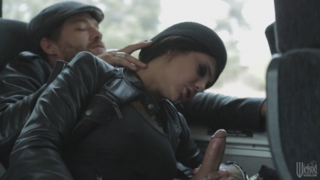 Молодая парочка едет в рейсовом автобусе. В дороге парочка заскучала и чтобы хоть как-то скрасить время поездки, короткостриженная сучка начинает сосать и дрочить своему спутнику. Мужчина не остается в долгу и дрочит в свою очередь подружке. После взаимных ласк, которые до безумия возбудили обоих партнеров, татуированная сучка садится вагиной на твердый ствол. Ребята ебутся и абсолютно не обращают внимание на еще одного пассажира, который сидит рядом.