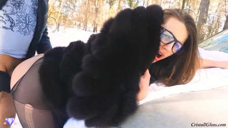 Парочка, просто обожающая секс, поехала прокатиться по ближайшему лесу. Вскоре им удалось найти укромное место для парковки и малышка в очечках вышла наружу, а бойфренд постелил полотенец на капот, чтобы подружка не испачкала свою шубку. Он разрывает колготки на благоверной и начинает ее жарить рачком, а мы наслаждаться красивой кругленькой задницей, покрывшейся так называемой "гусиной кожей". Кадры меняются на поближе, потом вновь съемка ведется издалека, малышка смотрит в камеру и открывает непроизвольно рот из-за стонов, но даже несмотря на жесткий холод, она испытывает самый настоящий природный кайф.