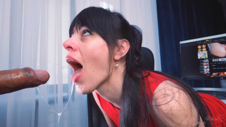 Ковыряясь с бумагами, графиками на мониторе и прочей неинтересной фигней, телочка в вызывающем наряде переключила вкладку браузера на порно ролик (причем с самой собой, где ей разминали попку и одновременно лизали киску). Героиню застукал нерешительный начальник, запретивший заниматься мастурбацией на рабочем месте и попросивший это делать дома. Лысый чел недолго думал прежде, чем достать свою волыну из брюк, дав глубоко отсосать подчиненной, а потом он повернул ее к себе задом и засадил во влагалище, напускав туда достаточно много собственных сперматозоидов.