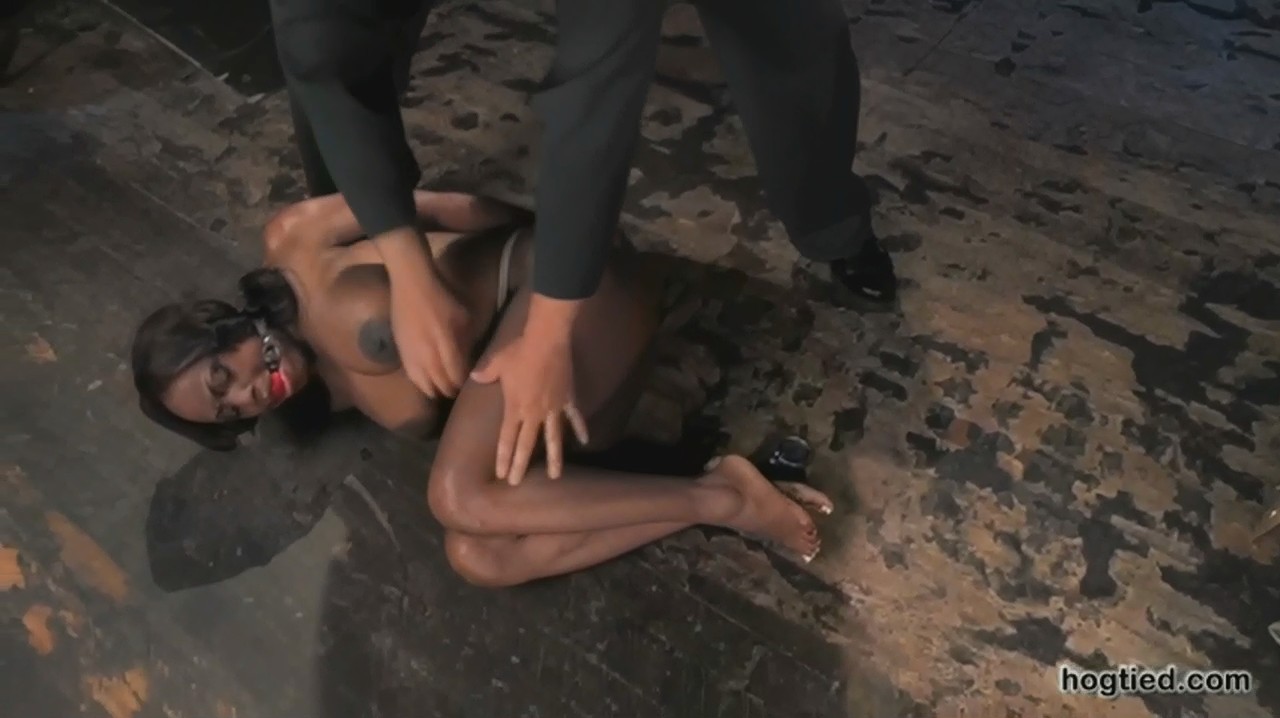 Как обычно, неинтересное интервью мы проматываем и наслаждаемся видом грудастой чернокожей женщины 47 лет, которой вставили кляп в рот и облили маслом, тщательно размазав по основным видимым частям тела, но и киску смазали хорошенько, ведь именно ей белый парень уделит большое внимание, оттягивая клитор вакуумной колбой, ее он будет бить плеточкой, а также прислонять вибратор и трахать елдой на палке, причем последние два действия одновременно. Так как сучка хорошо связана, она может только биться в экстазе и, не имея возможности противиться удовольствию, закатывать шарики за орбиты.