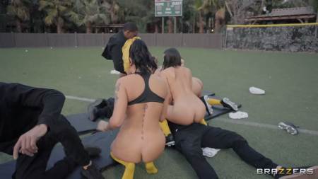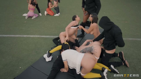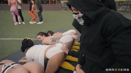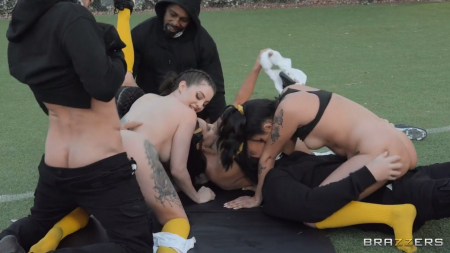 Спортивные девчонки весело проводят с битами время, кидая друг другу мяч и отбивая деревянными палками, которые еще немного поучаствуют в самом видео. Прозвучал громкий сигнал и только тогда малышки увидели, что их обступила толпа парней в одинаковой черной одежде. Они, если бы было оказано сопротивление, взяли бы бейсболисток силой, но те и сами были не против масштабной оргии на зеленом поле, причем еще пару телочек в обтягивающих штанах сами прибежали, чтобы принять участие в вечерней групповухе. Все еблись меняясь партнерами, на улице темнело, а самые дальние закоулки района хоть еще и не освещались луной, зато разогревались женскими стонами наперебой.