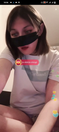 Симпатичная девятнадцатилетняя девушка села киской на свою пятку и неторопливо по ней елозит промежностью не снимая трусиков. В принципе, молодая россиянка полностью одета - футболка, маска но переносице и трусы, но даже этого достаточно чтобы высовывающая язык вебкамщица могла зарабатывать на непринужденной эротичной мастурбации перед мобильником. Она жалуется, что если начинать говорить нормальным голосом, то интерес зрителей пропадает, поэтому приходится как-то подстраиваться под разборчивого дрочера, которому достаточно видеть как мило она мастурбирует пяточкой.