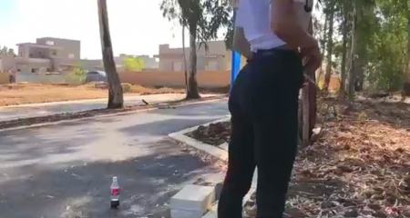 Парень с девушкой пошли гулять по самому краю города, граничащему с лесопарком. Ребята просто решили проверить какие будут ощущения, если потрахаться прямо на улице, хоть и практически безлюдной. Дабы убедиться, что тут действительно редко кто бывает, телочка с вьющимися волосами очень долго отсасывала бойфренду, уж точно большую часть ролика, практически не показывая лицо, а потом встала, приспустила с себя штанишки и дала оттрахать киску через резинку, неловко сдернутую бойфрендом, когда он собирался кончить на худенькую задницу своей фигуристой подруги.