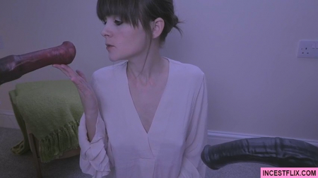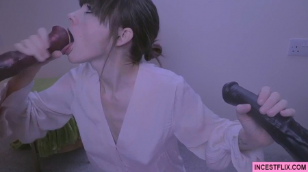 Сперва крошка с необычной внешностью рассказала о своей очень тайной фантазии с конями, а уже через минуту сидела между двух лошадиных дилдо, гордо свисающих под своей тяжестью головками вниз. Да, они хоть и не настоящие, но пофантазировать никто не сможет запретить! Она их надрачивает и посасывает, примерно представляя какими они могут быть на вкус, а после этого приподнимает блузку, заливая небольшие сисечки искусственной спермой, также залившей и лицо болтающей пошлые фразочки на английском домашней актрисы.