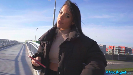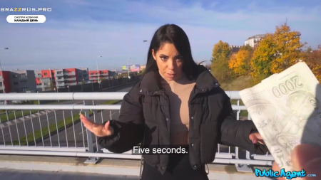 Проходя по мосту, чувак заприметил экзотическую телочку, почему-то делавшую селфи в таком неприглядном и шумном месте. Он начал ее расспрашивать откуда взялась такая красота, что тут в Чехии делает и зачем. Итальянская испанка все подробно рассказала о себе, но не сразу согласилась принять 500 евро за показ сисек с большими стоячими сосками, но в итоге сдалась. За такую же сумму она продемонстрировала еще и натренированную попку, а за 1000 стала готова отсосать где-нибудь в более укромном местечке среди кустов. Так итальянка дошла до того, что оказалась на складе среди разного рода вещей и то только потому, что член незнакомца был максимально хорош.