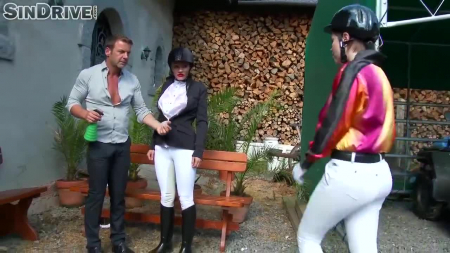 Три наездницы прикупили себе новые наряды, будто соревнуясь друг с другом. Находятся они на чужой ферме, совмещенной с ипподромом. Хозяина земель долго ожидать не пришлось - мужчина в дорогой рубашке пришел, ахуел и выгнал одну из девчонок прочь, оставив только самых провинившихся. Их он собрался наказать собственным пенисом. Для этого парень усадил на корточки перед собой симпатяг и дал обеим пощекотать головку гландами, после чего разорвал их белые штаны и засадил каждой в попку под открытым небом. Последнее им очень понравилось - девки даже не догадывались, что являются бисексуалками.