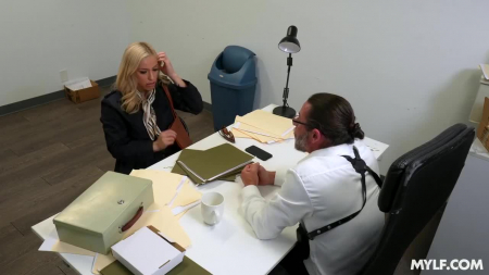 Белокурая женщина не знает этого мужчину, но детектив здоровается с ней по имени и почти сразу отдает несколько фотографий, где он запечатлел предполагаемую измену заказчику. Дамочка пыталась некоторое время отнекиваться, но доказательства были железобетонные. Тогда она просто взмолилась ничего не рассказывать ее мужу, даже согласилась вновь ему изменить, но уже с самим детективом. На ней был шикарный сексапильный наряд, а большой белый стол стал их любовным ложем. Весь половой акт блондинка корчилась от неприязни к незнакомому шантажисту. [MylfLabs] Lory Lace - Concept: Private Dick Lab.