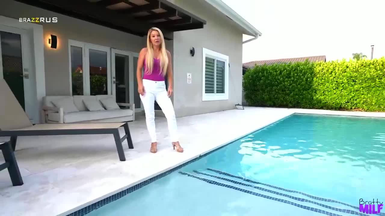 Весь день мачеха пилит приемного сына по делу и просто так. Когда тот уже решил расслабиться, промочив ноги в бассейне, она и тут попыталась испортить настроение, но все же согласилась сесть рядом и поделиться своими проблемами. Оказалось, что у нее жесткий недоеб из-за мужа, который трахает ее в лучшем случае только пару раз в месяц, отчего она срывается на пасынка. Поначалу парень только сделал массаж ступней, но когда попытался пощупать чутка повыше, получил отказ. Но уже через пару минут щупал сиськи мамы, давал ей на клык возле бассейна и ебал на всю длину в доме папы.