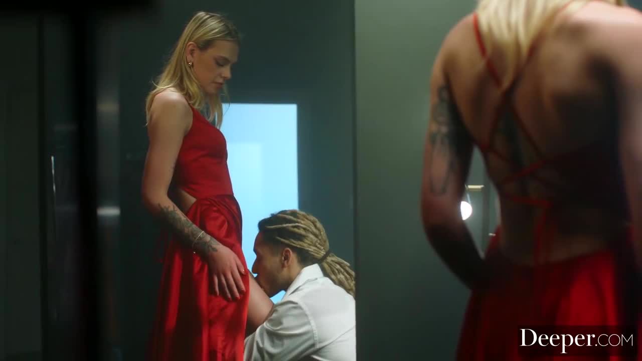 Роскошная девушка купила себе красное как кровь платье, а ушить его на талии помогает смуглый и очень вежливый специалист. Клиента просит сделать покупку поплотнее и по ее лицу явно видно как ей нравится, когда кто-то обращается грубо с ее стройным телом. Когда примерка платья закончилась, героиня попросила помочь ей немного и тут уже парень не сдержался в столь интимной обстановке - он поцеловал ногу красавицы, но это было только начало слишком страстного полового акта, где шлюшка заглатывает до слюней и долбится во влажную киску, получая пощечины. [Deeper] Dylan Moore - Tighter.