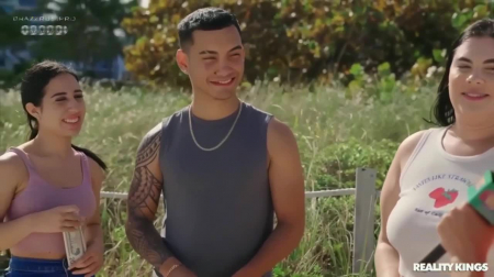 Давно общеизвестный факт - люди, особенно раскрепощенные девушки, готовы на многое ради денег. И, чтобы подтвердить данную теорию, ведущая шоу Келси отправляется с деньгами прогуляться по солнечному городу. Какие-то девчонки готовы показать голые сиськи и поцеловаться с подружкой, другие согласны только прилепить стикер себе на попку. Но самой главной изюминкой передачи становится СиДжи Майлз - большегрудая азиатка, вместе с которой главной героине нужно будет отсосать член. Вот только первый был маленький, но следом высунулся второй через отверстие - вот этого лысого парня они и будут ебать вдвоем.