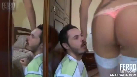 Стройная русская барышня засобиралась уходить, но ухажер совсем не хотел ее отпускать, ведь пара не сделала самое важное утром. Когда он полизал анус девушке, а также помастурбировал ее киску пальцами, та милым голоском сообщила, что согласна ненадолго остаться для секса. Симпатяга надела белые чулки, встала возле шкафа с зеркалом и в ее попку туго вошел член любовника. Правда, предварительные ласки длились так долго, что сам акт занял слишком мало времени, а после того как парень кончил в попку любимой, он облизал ее анус, на котором все еще была его собственная малафья.