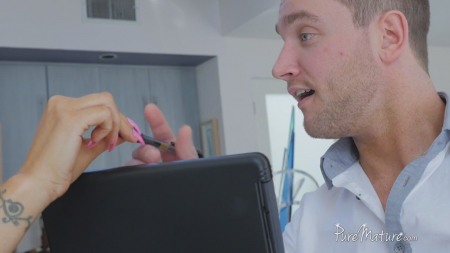 Риелтор показывает потенциальному покупателю двухэтажный особняк. Уже на кухни мужчина обращает внимание на большую грудь, которая чуть ли не вываливается из глубокого декольте. Очаровательная девушка с татуировкой на всю спину даже проверила с мужчиной кровать на прочность (хоть это и не входит в ее служебные обязанности) - незнакомая обстановка и обаятельный мужчина подвигли озабоченную брюнетку соблазнить клиента и отдаться ему.