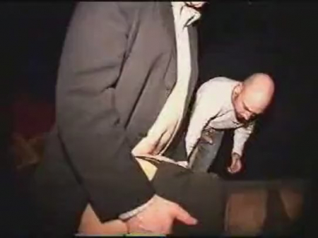 Брюнетка с огромными сиськами оказалась единственной дамой в кинотеатре на просмотре порно фильма и, конечно же, все мужчины сняли сексуальное напряжение с ее помощью. Возбужденные самцы отымели телку в рот и в вагину,а потом оскорбленная дама просто сбежала из кинотеатра.