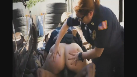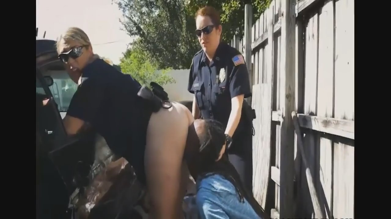 Две одинокие, но очень похотливые сучки, превышая должностные полномочия ловят на улице нарушителей общественного порядка и заставляют с собой сексом заниматься. На этот раз в цепкие руки попал молодой негр с дредами. Блондинка заставила парня лизать ей, а потом и ебать - и ее саму и напарницу. Под открытым небом телки предались грехопадению и после отвезли парня в участок.