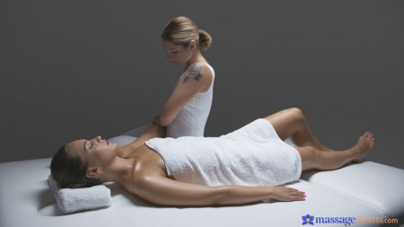 Сексуальная девушка пришла на массаж. Симпатичная клиентка, закутанная в полотенец, получает удовольствие от нежных ласкающих движений опытных рук. А массажистка в свою очередь очень тщательно массирует плечи, руки и даже пальцы клиентки. Но вот только от прикосновений к нежной коже, мастер возбуждается и "обращает" клиентку в лесбиянки - начинает приставать к девушке, лежащей с закрытыми от наслаждения глазами. Очаровашка (находящаяся тоже в возбужденном состоянии) не против дальнейших ласк, даже наоборот, ждет их с нетерпением.