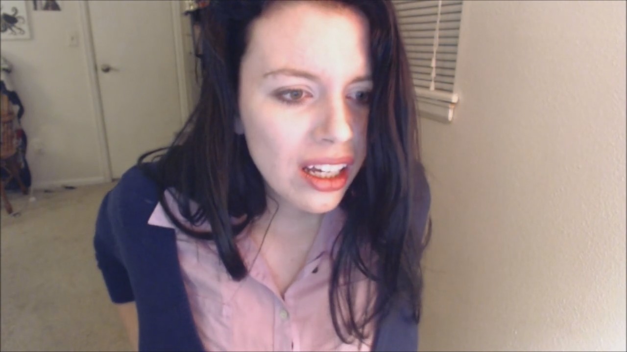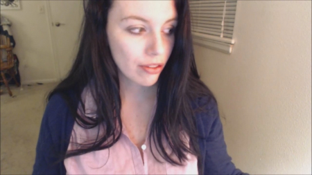 Симпатичная телка с огромными сиськами перед камерой записывает свой монолог. Но во время записи довольно странная дамочка резко возбуждается и начинает трогать аппетитную плоть. Потом так же резко девушка "возвращается" в обычное состояние и продолжает говорить. Но волна снова накатывает - только еще сильнее - и симпатяга начинает трахать себя пальцами.