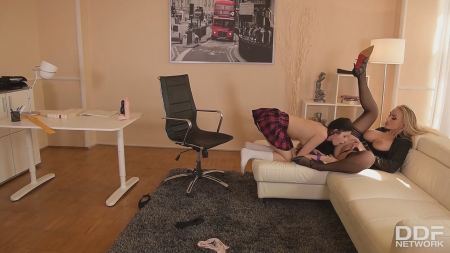 Ученица по обмену немного отстает по русской программе занятий и занимается с репетитором. Во время очередного домашнего занятия Ребекка пишет диктант, а озабоченная женщина читает молоденькой ученице эротический роман, изредка переходя на русский язык. Симпатяга в сексуальной форме не понимает, чем невероятно выводит из себя репетитора. И тогда, не объясняя больше ничего, развратная училка наглядно показывает подопечной о чем идет речь. Репетитор загибает стройную брюнетку раком и ебет ее в жопу разными игрушками, а потом заставляет лизать свою пилотку.