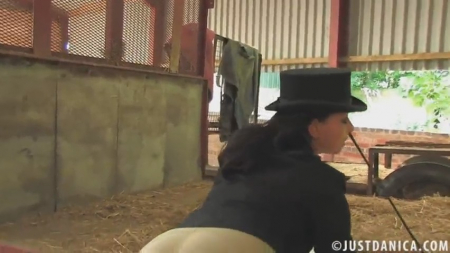 Во время скачет вырабатывается дикий адреналин не только у тех, кто ставки делает, но и у самих спортсменов. После скачек жеребцы отдыхают в стойле, ну а как расслабиться напряженному жокею? Сексапильная телка с большими сисяндрами и задницей накачанной нашла просто превосходный вариант - мастурбация. Не выходя из конюшни, развратная дамочка начала медленно раздеваться, обнажая аппетитные формы, а после вонзила в киску стек (хлыст то есть), с помощью которого и получила огромное удовольствие и расслабление.