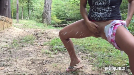 Представительница прекрасной половины человечества, прогуливаясь по парку с бойфрендом, решает сделать остановку на безлюдной тропинке - свидетели не нужны. Нет, девушка не собиралась пописать, шалунья захотела подрочить. Милашка с креативной прической яростно оттрахала себя среди зелени деревьев, пьянея от свежего воздуха, и последствия данного акта любви самого себя заканчиваются сквиртом. Мощные струи секретной жидкости вырываются из удовлетворенной дырки, постепенно впитываясь в землю.