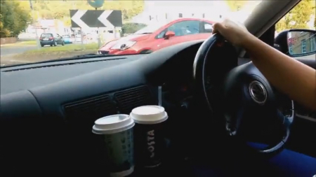 Необычность ситуации повлияла на дальнейшие действия очаровательного водителя. Держась одной рукой за руль, второй милашка схватила член и принялась бойфренду теребонить. Но по мере того, как поднимался член, возбуждение девушки набирало обороты и она захотела ощутить пульсирующую от удовольствия плоть во рту. Не долго думая, развратница припарковала автомобиль и, наклонившись, обхватила член ротиком. Достаточно быстро опытная леди заставила друга достичь оргазма, и собрав семенную жидкость в рот, проглотила вязкую жижу.
