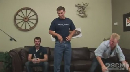 Трое молодых мужчин, собравшись вместе, весело провели время. Заняв себя коллективной игрой, ребята здорово повеселились, но эта игра была скорее прелюдией к чему-то большему - ведь в процессе игры парни обнажали свои письки и нежно поглаживали друг друга. Впрочем, это занятие долго не продлилось. Друзья уединились в комнате на кровати и насладились взаимными минетами, отсосав друг другу члены и получив массу приятных ощущений.