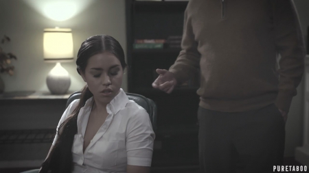Окончательно отбившись от рук, юная брюнетка пошла к психологу, чтобы разобраться в себе, почему она не может эффективно бороться против отца, который все время бьет ее и хочет изнасиловать. Но так вышло, что психолог сам оказался не лыком шит, и после непродолжительного разговора по душам, он дал ей выплакаться, после чего стал потихоньку раздевать и ласкать сначала грудь, затем пониже. И в конце концов выебал его на столе посреди комнаты, как настоящий профессиональный врач.
