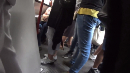 Необычное приключение случилось с двумя незнакомыми людьми в переполненном общественном транспорте. Стройная малышка в обтягивающих штанах вызвала эрекцию у сзади стоящего парня, случайно задев его в области паха аппетитной округлостью. Почувствовав твердую плоть, малышка осталась польщена, поэтому решила не останавливаться и дальше специально стала тереться о член незнакомца.