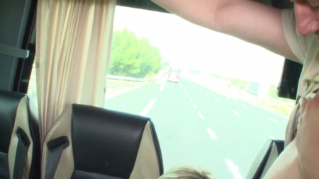 Блондинка мастурбирует на экскурсии в автобусе