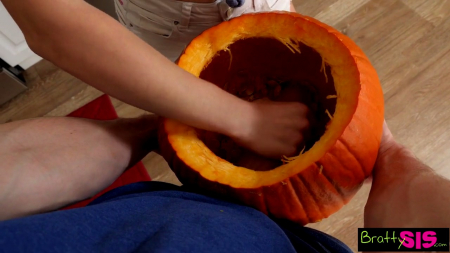 Веселая семейка у нас здесь, скажем без преувеличения. Чувак вместо того, чтобы подготовить тыкву на хэллуин, вырезает в ней дырку и засовывает туда хуй, а затем просит сестру потрогать. Ей понравилось дрочить хуй в тыкве, но была одна загвоздка. В это время на той же кухне мать готовила ужин, и увидев такой трешак, дала пиздюлей обоим. Впрочем, они особо не обиделись, и пошли жестко ебаться за стенку, и чуть снова не были спалены той же мамкой с потрохами.