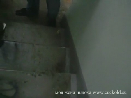 Обычно жены довольно изобретательны в плане измен мужу. Лучше лишний раз перестрахуются, а когда уже лень делать даже это, хотя бы пытаются не палиться, приводя любовника в то время, когда супруг точно на работе. Но эти ироды уже потеряли всякие грани приличия, и оставив открытую дверь нараспашку, в открытую ебутся на лестничной клетке. И даже сосед, спустившийся с камерой сверху, не произвел на поганцев никакой реакции. Только в конце, когда любовник спустил в нее всю кончу, стыдливо прикрыла лицо рукой.