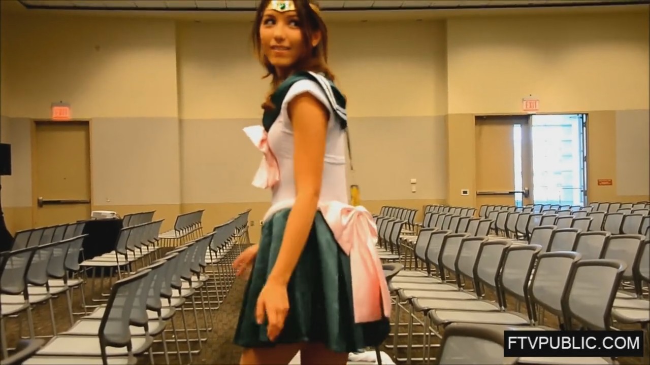 Классная девчонка любит переодеваться в героев компьютерных игр, именуя это дело косплеем. В целом ничего зазорного и пошлого, но в каждом тихом омуте есть вещи, которые сперва не бросятся вам в глаза. Например, она принципиально не носит нижнее белье, да еще и светит в метро анальной пробкой. Не ожидали такого, да? И никто не ожидал. Прямо в общественном месте, в зале, где полно народу, она находит моменты, чтобы показать в камеру свою голую задницу и еще и вагину почесать успеет. А с первого взгляда так и не скажешь, что она экстремальная эксгибиционистка.