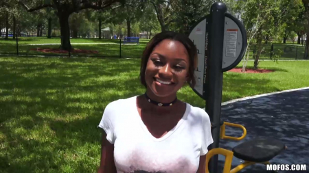 Веселая парочка пробует чудеса техники - вибратор на аккумуляторах с дистанционным управлением. Белый парень приводит свою негритянку на спортивную площадку, где занимаются посторонние люди, после чего начинает нажимать на кнопки пульса, ставя девушку в очень неловкое положение - прохожие интересуются ее здоровьем, потому что внезапно кричать, по их мнению, можно только от боли. Но негритоска никак не может угомониться, поэтому жаждет продолжения. И уединившись, отойдя чуть подальше, она отсасывает его большой болт, а потом трахается с ним в позе наездницы, не забыв в конце жадно выпить всю сперму.