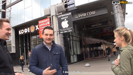 У друзей наконец то совпали выходные дни. Трое ребят собрались перед торговым центром - один из них с видеокамерой, не зная чем себя занять. Но тут пришла в голову идеальная мысль - надо снять телку и хорошенько потрахаться. Тогда друзья стали подходить к симпатичным девушкам и проводить якобы социалогический опрос. Но троице все не везло - ни одна девушка не клюнула на их подкат. Друзья замерзли и зашли в торговый центр. И наконец то удача улыбнулась парням, ведь они увидели сексуальную милашку, которая стояла в одиночестве. И к счастью друзей, телка повелась на подкат, завязалась беседа. В результате ребятам удалось увести симпатягу с аппетитной задницей в подсобное помещение. За сто баксов девушке предложили показать грудь. Она не долго ломалась, немного покривлявшись забрала деньги и приспустила лифчик. Такая же история повторилась когда милаху попросили показать попку. Еще за сто баксов девушка взяла в руки член одного из ребят, а еще за сто разрешила себя выебать. В итоге заработала 400 баксов и получила огромное удовольствие от секса с двумя парнями. Ребята тоже хорошенько оттянулись и обкончали шлюхе лицо. Трахнули ее и убежали.