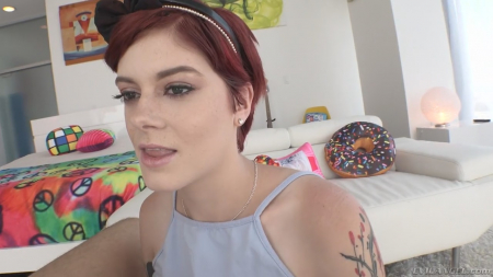 Короткая стрижка и рыжие волосы - атрибуты довольно озорной женщины, и не спроста. Эта сучка, на футболке которой написано нечто, вроде "твое сновидение", готова не только удовлетворить все твои желания, но и сделать это весьма умело и в оригинальной последовательности. Например, целиком и полностью вылизать ему анал перед минетом - так точно большинство женщин не делают. А потом взять, да после этого сразу дать в жопу, наслаждаясь тем, как он протыкает очко анальной королевы своим толстым и большим хуем, пока он не кончит ей в район лица.