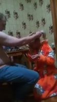 Блондинистая красавица лет за тридцать осуществляет привычную для себя операцию - сосет кому-то член. Сегодня она делает это в одном рыжем халатике со слониками, а сегодняшний хахаль после плотного плова с мясом уже выкатил свой хуй наружу. Леди хочет выслужиться перед молодым (или не очень) человеком, и делает мужику минет на пять баллов, что он не выдерживает и двух минут. Единственное, что он успевает спросить, это возможность кончить ей в рот, на что получает "угукающий" утвердительный ответ. На моменте захлебывания спермой видео, увы. останавливается.
