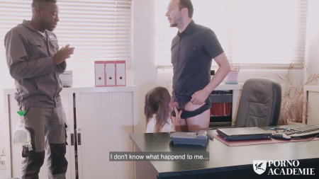 Молодая студентка-нимфоманка уже вовсю опаздывала на пары, и подумав, что она все равно опоздает, решила забежать в туалет. Только не на стандартные для того места дела, а на сеанс приватной мастурбации. Она рисковала - дверь в туалет снесли еще в прошлом году, и конфиденциальности ей никто не гарантировал, но занятия уже начались, и теоретически никого здесь быть не должно. Однако черный уборщик шел натирать толчки и несказанно обрадовался находке, трахнув сучку за неповиновение. Потом он еще к директору ее привел, и там они разделали шлюшку на двоих.