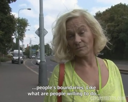 Мужчина снимающий девушек на улице и предлагающий им секс за деньги захотел экзотики. Сегодня у него в целях найти даму постарше для плотских утех и отвезти ее безлюдное место, где женщина сделает все что он захочет. Первая тетя ответила отказом, но следующая светловолосая жертва пикапера попалась на удочку. Для нее это простой способ заработать денег, ведь ничего трудного делать не нужно - только показать старые сисечки, взять за щеку и потрахаться недалеко от железной дороги. За каждый последующий шаг она получала все большие суммы. Занимательная игра на старости лет.
