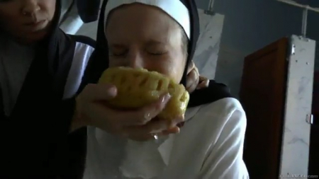 В монастырь пришла новая послушница. Девушка прошла своеобразное обращение в монашки. Симпатяги обмыли телочку, а потом оттрахали в попку игрушкой и пальцами. Такое посвящение пришлось очень даже по вкусу юной симпатяге.