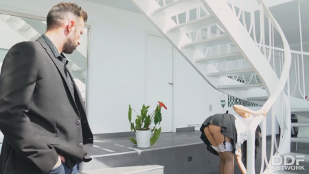 Двойные стандарты баб просто зашкаливают в этом видео. Сперва горничная самым наглым в мире образом виляет перед хозяином дома, а когда тот проявляет знаки внимания - динамит его. Но мужик был тоже не промах - увидев эту роскошную сраку и оставив протирать ее хозяйку стеклянные столы, он быстренько вышел из комнаты, но стал подглядывать в дверь за тем, как она виляет жопенцией в позе красного рака. Но по неосторожности палится, отчего получает выговор... но его спасло, что его хуй уже был извлечен из ширинки, поэтому брюнетка быстро переключилась на минет с продолжением.