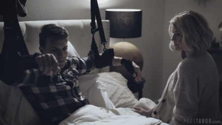 Похотливая мачеха трахнула сына на кровати под открытым небом
